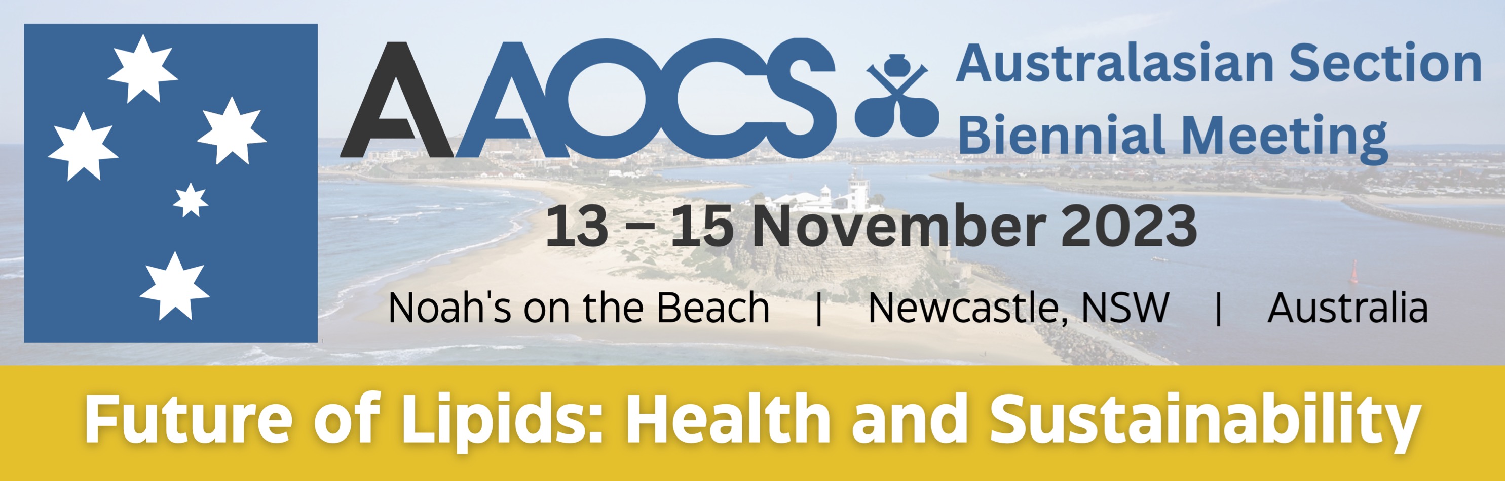 The program for the 2023 AAOCS meeting "Future of lipids: health and sustainability" @ Noah's on the Beach in Newcastle Australia Nov 13-15th 2023 is attached.